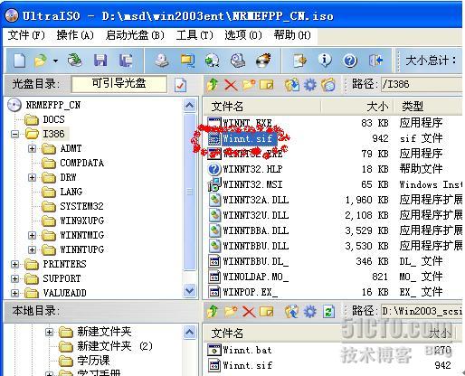 用Ultra工具将winnt.sif集成到win2003+sp2中,如图