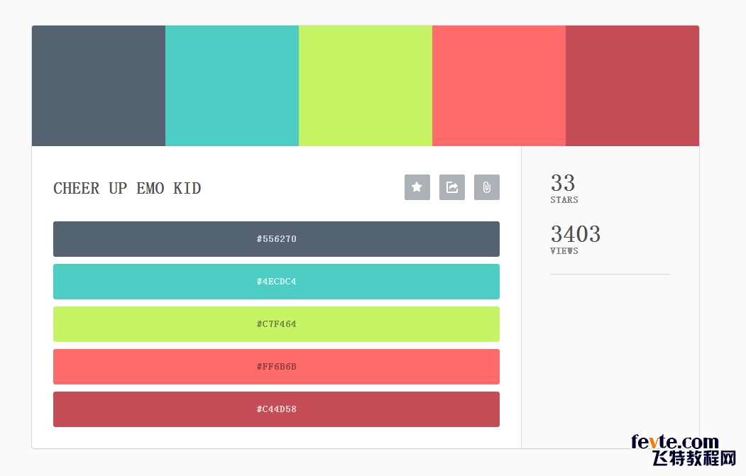 这也是我在之前就没有进行编组的原因,因此此时我要对这个LOGO进行上色。很多人都会在制作前就已经有了配色方案。你也可以去到专业的配色网站Pltts(http://pltts.me),挑选一个你认为合适的配色,也可以来我的收藏夹配色系列(www.ifeiwu.com)看看其他的配色网站是否有你喜欢的配色方式。下图是我在配色网站里所选择的配色。