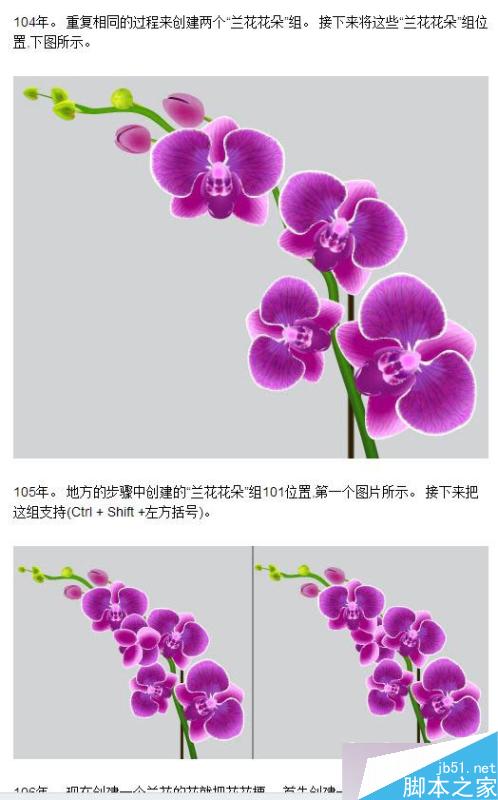 这篇AI绘制一盆盛放的美丽兰花教程,绘制出来的兰花还挺漂亮的,绘制的难度一般,推荐一下和脚本之家的朋友们一起分享,一起学习了,我们先来看看最终的效果图吧: