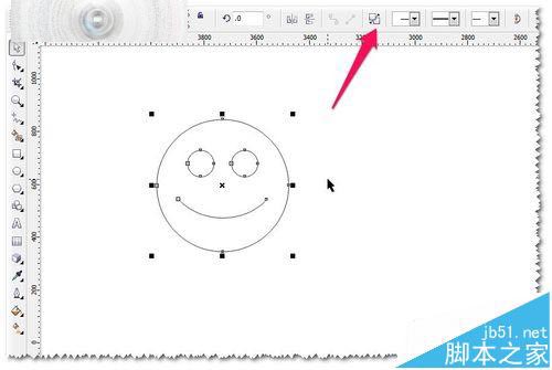 2、这个笑脸比较单调一些——想做细节的调整!这里想把微笑改一下,怎么弄呢?先转曲——选中图形——CTRL+Q转曲,然后打散——CTRL+K打散。如图
