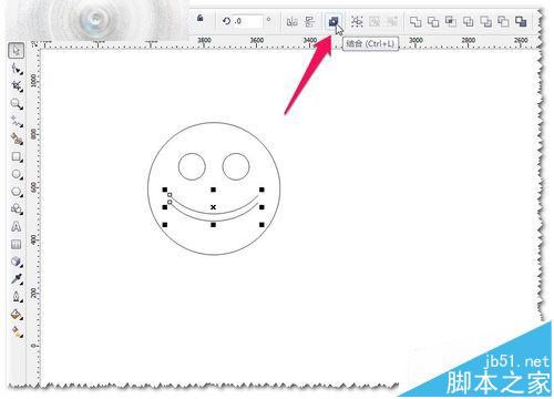 5、当然你也可以自己画一个更漂亮的微笑哦。这里使用框选全选图形——进行进行合并——CTRL+L结合。如图