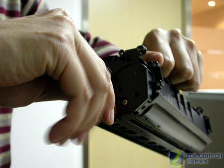 硒鼓顺着导轨滑到底部,之后轻微按一下