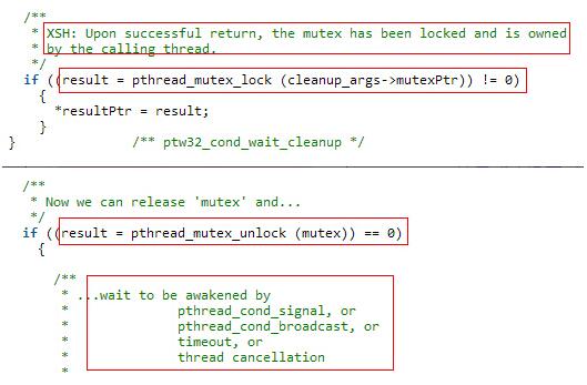 pthread_cond_wait()是先将互斥锁解开,并陷入阻塞,直到pthread_signal()发出信号后pthread_cond_wait()再加上锁,然后退出,可以看到它们在设计时就是为了协同配合,而互斥锁和信号量都是由Linux下的futex机制实现的,这里就不展开说了