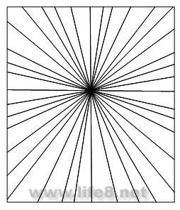 使用箭头工具选择直线,展开Transform面板,选择旋转功能,在旋转角度框内输入10,在Copies框内输入1,然后按下Rotate按钮,旋转并复制一条直线。改变旋转角度,最好应保持在6~13范围内随机变化,不断旋转复制,直到复制出的直线围成一圈。需要注意的是,应保证直线的条数为偶数,也就是说按下Rotate按钮的次数应为奇数,这样才能保证后面的填色操作不出问题。