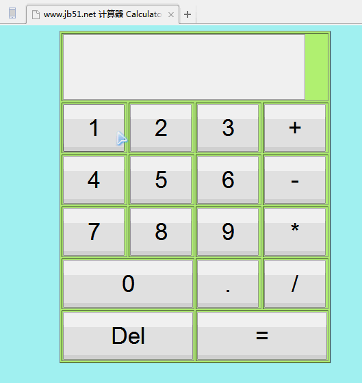 <!--将按键内容以字符串形式存储在文字框中当按钮为“=”时,调用eval方法计算结果然后将结果输出文字框中-->