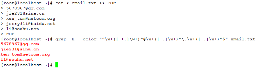 grep -E --color "^\w+([-+.]\w+)*@\w+([-.]\w+)*\.\w+([-.]\w+)*$" email.txt