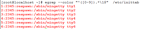 (3)、显示/etc/inittab文件中以一个数字开头并以一个与开头数字相同的数字结尾的;