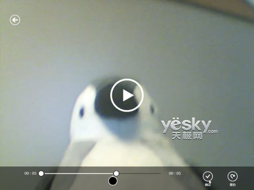 如果我们刚才点选了“视频模式”,点击屏幕之后,Win8摄像头会开始录像,录录制5秒视频之后结束。