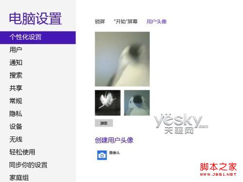 图示:Win8用户头像设置