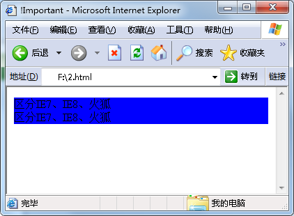 无论是在ie6-10或者Firefox和Chrome表现都是一致的,都显示蓝色。