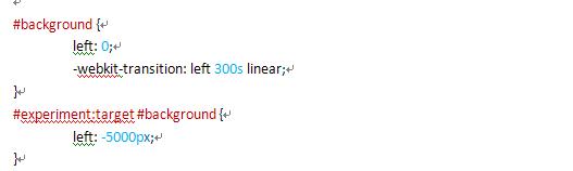 按 照通常的想法,只有当页面被缩放的时候,或使用JavaScript来控制的时候才能产生动画效果。这里使用另外一种方法。通过让背景图容器的左边沿进行 移动(比如从0px到100px)。这就会使容器的整体宽度变化,从而使背景图片根据它们的百分比发生不同程度的移动。通过将时间长度和左侧位置设置的足 够大,就会产生连续的视差移动效果。