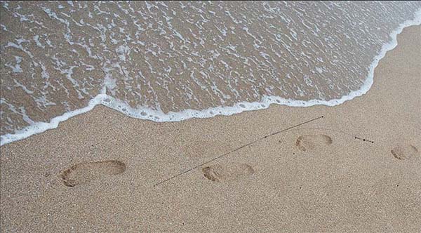 步骤1:在photoshop中打开沙滩图片,选钢笔工具(P)在沙滩上画一个路径,效果如下