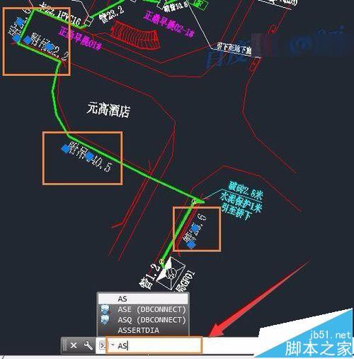 1、回到图纸的操作界面,先用鼠标左键点选择多个含数字的文本,然后在命令行中输入 as, 此时敲一个空格,就会得到选中的数字的和了.