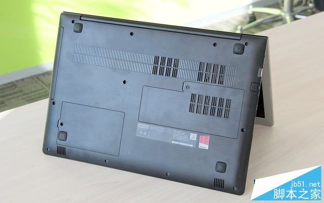 联想小新笔记本310机身底部面板并非一体化设计,而是在硬件、内存等可升级、更换部件的对应位置,设计了可拆卸面板,方便用户更换、升级硬件。此外还设计了散热窗,以便机身在高负载时进行快速散热。