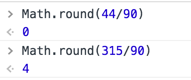 我们再继续转换,现在我们把算出来的角度除以90,然后四舍五入,可以使得45°为分界线
