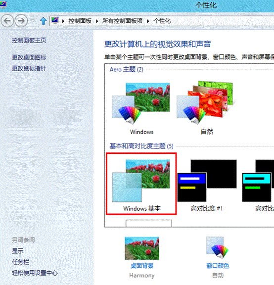 5、在“基本和高对比度主题”下面,选择“Whindows 基本”;