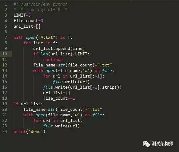每五行一分割的话就是5个txt文件,下面为实现的python脚本:split.py