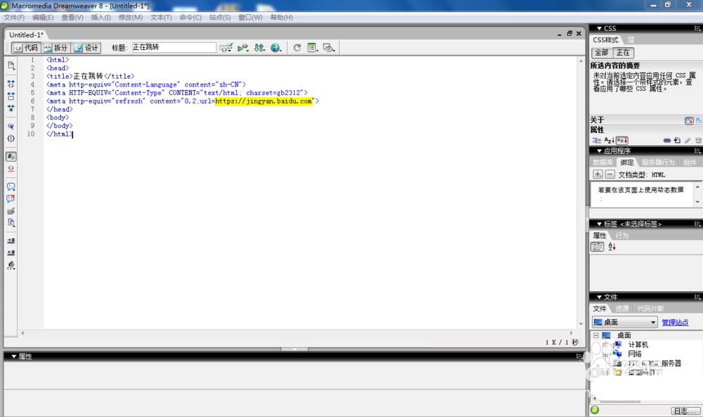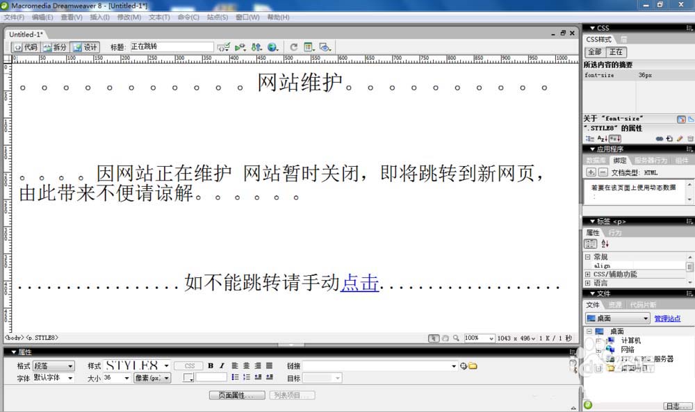 网站维修,想要做一个提示并自动跳转的网页,该怎么做呢?下面我们就来看看dw 8来制作自动跳转网页的教程。