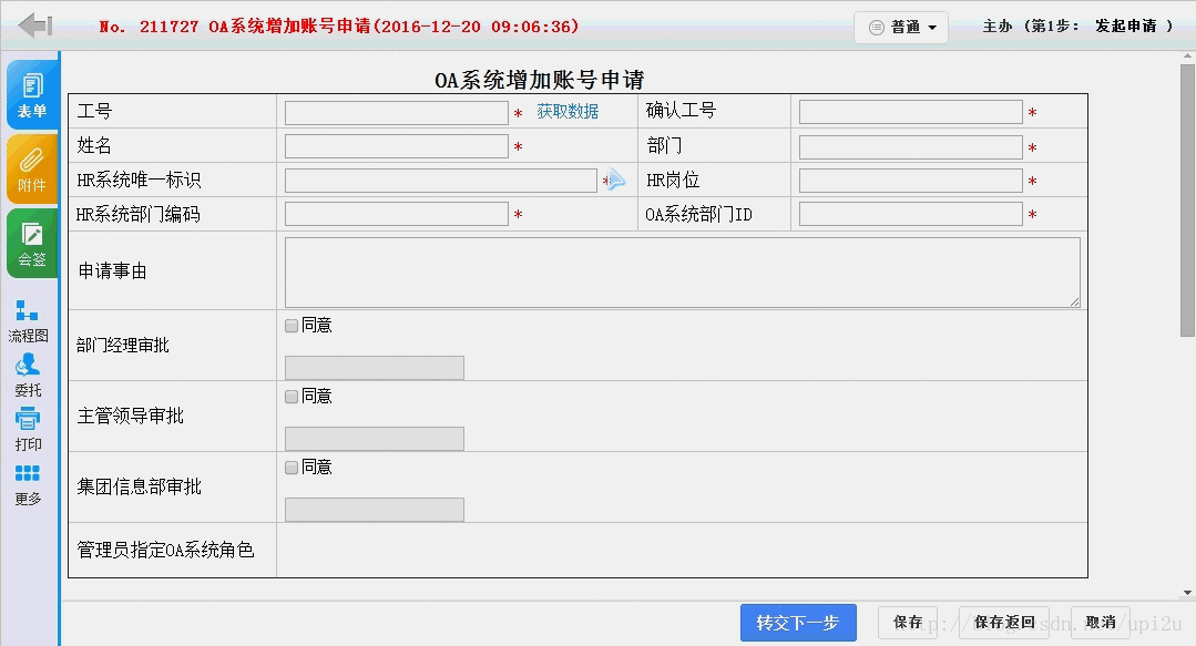 以上所述是小编给大家介绍的通达OA 使用Ajax和工作流插件实现根据人力资源系统数据增加OA账号(图文详解),希望对大家有所帮助,如果大家有任何疑问请给我留言,小编会及时回复大家的。在此也非常感谢大家对脚本之家网站的支持!