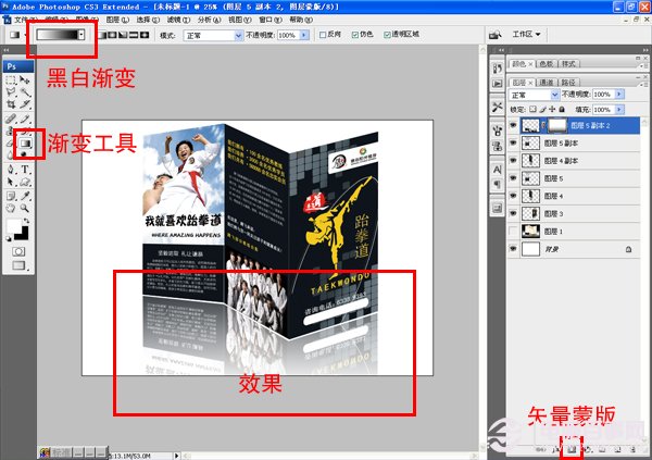 七、添加矢量蒙版,选择黑白渐变由上向下拖动,形成倒影效果如下图: