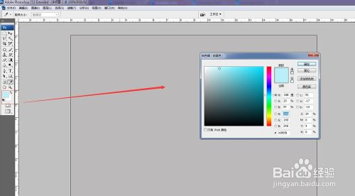 2、然后单击工具箱中下方的拾色器,设置“前景色”,点击拾色器弹出一个窗口,设置相关的参数。单击确认。(如下图)