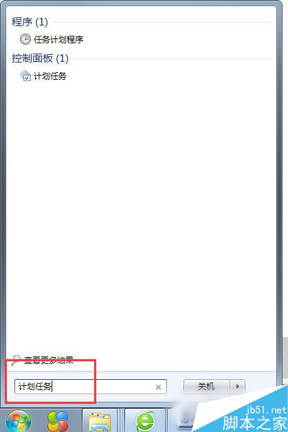 1.打开开始菜单,然后在搜索框中输入计划任务这几个字,如图。