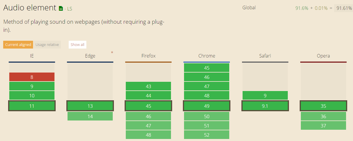 若想知道HTML5某个功能被各浏览器支持的情况可登录 http://caniuse.com/ 进行查询。