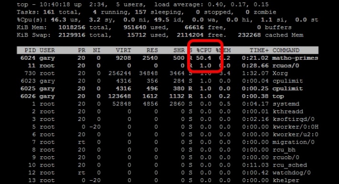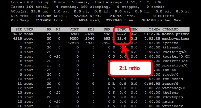 从上面的例子可以看出 matho-primes 只使用了50%的 cpu 资源,剩余的 cpu 时间都在 idle。