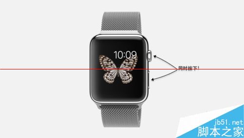 4、如果上面的二个方法,都不管用的话,还有最好一招,那就是同时按下“数码皇冠和侧边”二个按钮不放,如图所示