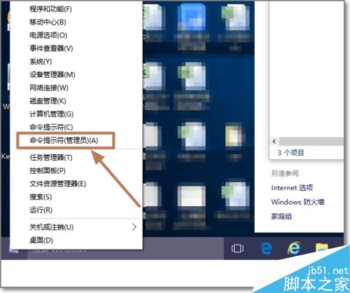 1、首先在进入有管理员权限的命令提示符,若是Windows10操作系统,右键开始图标,或按Windows键+X