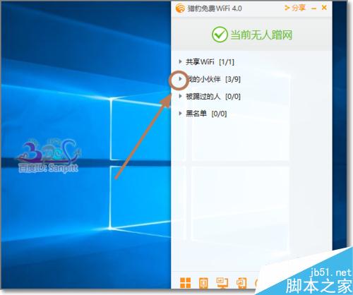若是电脑共享的Wifi热点,是以第三方软件,如360免费Wifi,金山猎豹Wifi等。则可以通过软件本身可以查看到连接此电脑的Wifi热点连接人数。