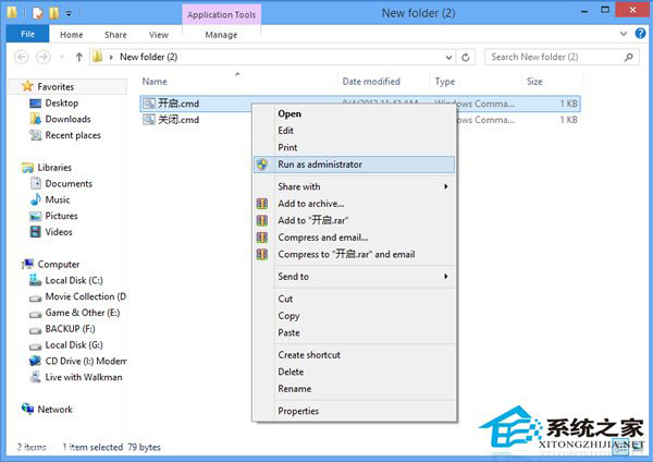 3.右击“开启.cmd”以管理员运行,如图: