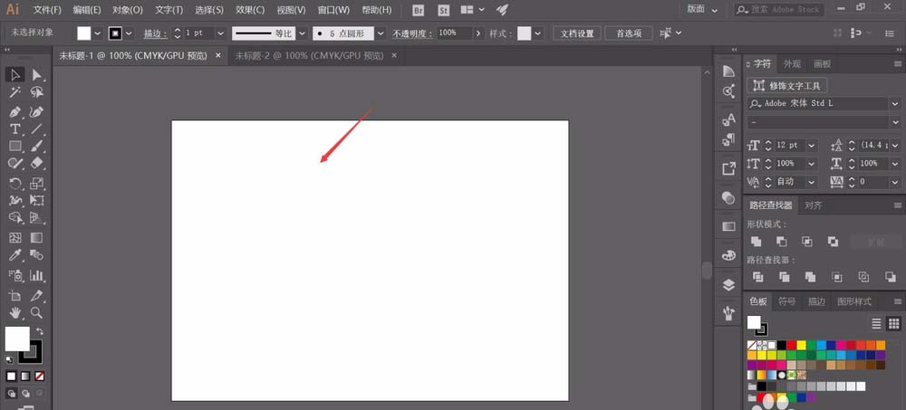 2、等待Adobe Illustrator进行加载,加载完毕后,我们就会进入到空白画布的绘制页面,滑动鼠标进行画布的放大和缩小,将其调整到合适绘制的位置。