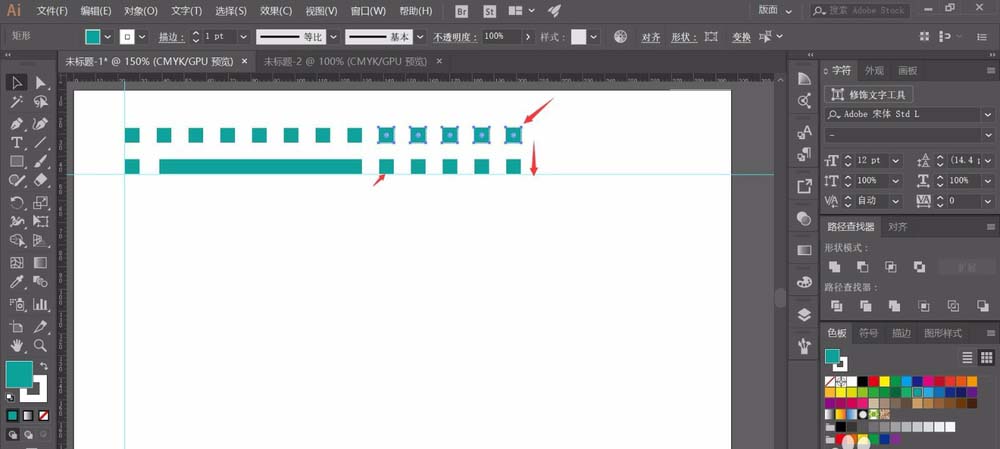 7、拥有一次复制参照之后,我们就可以使用Adobe Illustrator的重复复制命令,按下“Ctrl+D”键,即可进行相同的复制操作,每一次移动相同的距离进行多次复制。