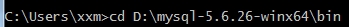 1)从控制台进入到MySQL解压目录下的 bin 目录下: