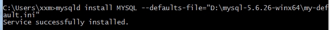 mysqldinstall MYSQL --defaults-file="D:\mysql-5.6.26-winx64\my-default.ini"