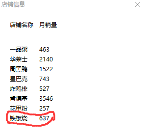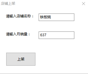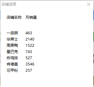 (3)信息查询:在窗口界面中,通过响应的按钮触发,实现与数据库的连接查询,得到所有在线店铺信息。