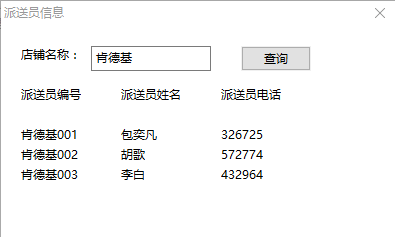 (4)数据统计:在数据库中编写相应的存储过程,输入店铺名称即可select其所管理的派送员和客服人员。