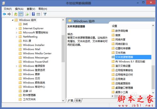 依次定位到用户配置管理模板Windows组件。找到其中的文件资源管理器,或者是Windows资源管理器。