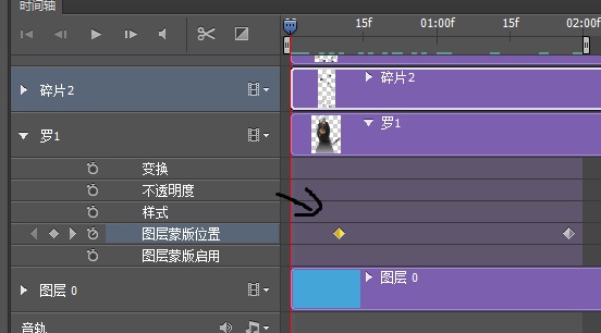第九步:点击罗1和罗2的图层蒙版位置的码表按钮。如图9.