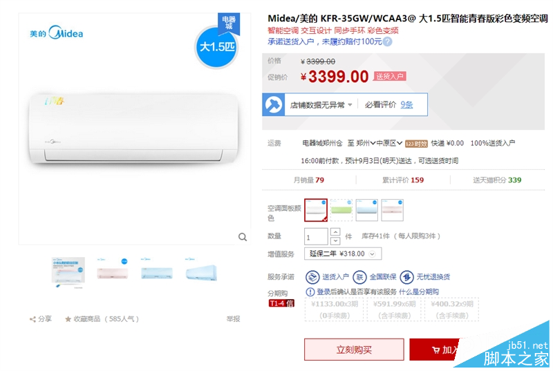 1.5匹版3399元