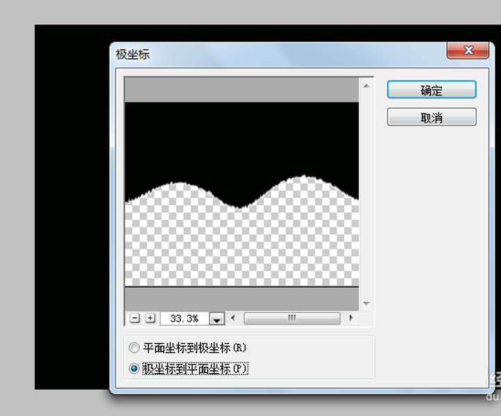 8、执行滤镜-扭曲-极坐标命令,在弹出的对话框中勾选平面坐标到极坐标选项,点击确定按钮。