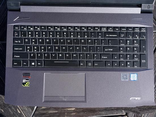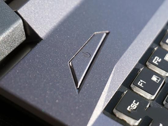 C面主要是输入操作区,这里布置着电源键、键盘、和触控版,同时也对产品的主要配置信息进行展现,在不开机的情况下,向用户展现它的内部配置。在C面的左上角是雷神ST-Plus的电源键,没有采用规矩的方形或者圆形,ST-Plus的电源键被设计成利刃的形状,在新奇有趣的同时似乎也预示着ST-Plus是玩家在游戏中征战厮杀的利器!剩下的键盘和触控板我们将在后篇的细节篇中进行具体展示,在这里我就不作过多说明了。