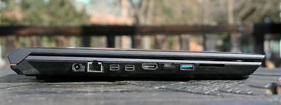 说到PC产品的细节设计,首先要说的就是接口。通过自身设计的各类接口,雷神ST-Plus可连接外部设备,对机身进行扩展。除了必备的网线接口、耳机麦克风接口和SD多合一读卡器接口,在机身的左右两侧,布置着2个可支持高速文件传输的USB3.0接口和一个USB2.0接口,也许有人会觉得已经有了新一代的接口,还设置前一代的接口是不是有点多余?其实不然,不少玩家手中还留存着只能适配USB2.0的外设装备,多设的接口让雷神ST-Plus能够适配更多的设备。除此之外,该机还配有TYPE-C接口进行机身性能拓展,满足用户的各类外设存储设备的连接需要。