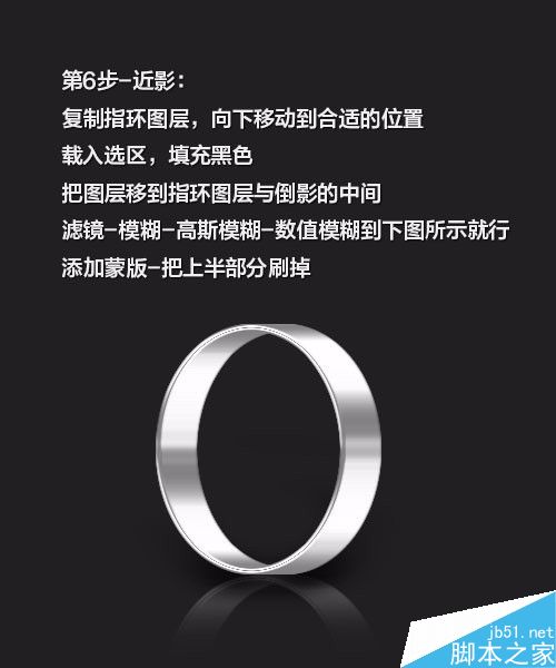 如果要做文字的话,最好是在做倒影前就做好,然后把指环和文字图层一起复制,再合并图层翻转做倒影,这个倒影里就会有文字,更逼真一些。