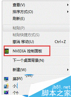 1、在桌面空白处单击右键,选择“NVIDIA控制面板“;