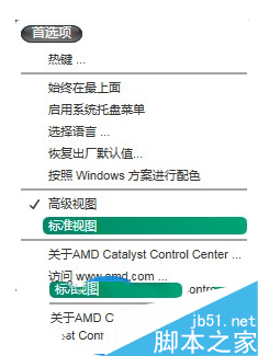 2、打开AMD Catalyst Control Centre控制面板后点击“电源”区域,点击右上角的“首选项”按钮,检查菜单中是否勾选为“标准视图”,若不是请修改为“标准视图”;