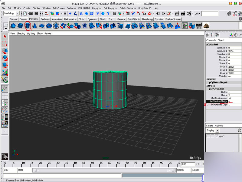 建一個圓柱,並將柱子高度細分成 4