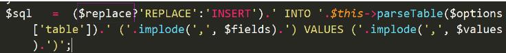 Model.class.PHP中add()方法,调用了Db.class.php中insert中方法,在insert方法中,我们可以看到有如下代码: