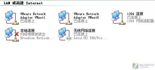 安装了VMware虚拟机后,会在网络连接对话框中多出两个虚拟网卡,如图: